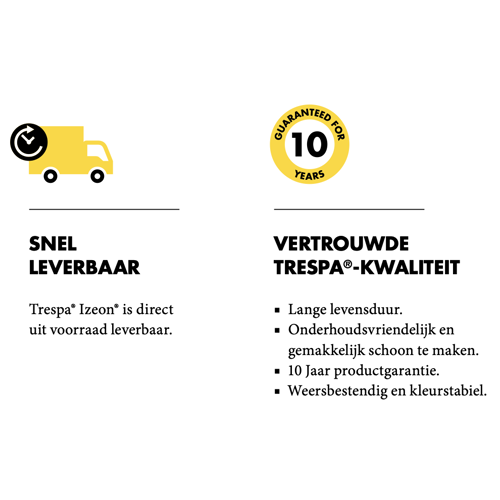 Trespa® is veruit de beste HPL plaat op de markt voor de bekleding van gevels, dakranden, boeiboorden en sanitair. Trespa® Izeon® is de nieuwste productlijn van de Nederlandse multinational. Deze collectie is volledig gebaseerd op RAL kleuren! Voorheen en nog steeds stond Trespa® bekend om zijn eigen kleurcodes die weer overeenkwamen met RAL codes. De Izeon® productlijn maakt hier een einde aan, zodat de HPL platen zonder enige zorg gecombineerd kunnen worden met bestaand en nieuw schilderwerk. Kenmerkend en volkomen uniek aan Trespa® is de productiemethode: met de unieke EBC-technologie (EBC = Electron Beam Curing) wordt het plaatmateriaal onder hoge druk en temperaturen vervaardigd tot dé beste gevelplaat op de markt.